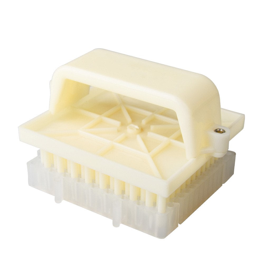 This is a great and easy tool to collect pollen from the hives. By installing the plastic frame on the regular frame you give the bees a chance to collect pollen there. Then you use a pollen pusher to push the pollen out of the frame.