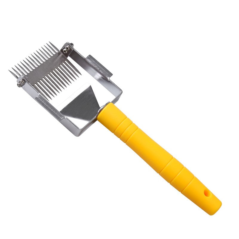 Designed with your convenience in mind, this fork features a specially crafted design that allows for a smooth and effortless uncapping process. The durable plastic handle ensures a comfortable grip, making it a breeze to remove the wax from your honeycombs. The bright yellow color adds a touch of vibrancy to your beekeeping toolkit, making this fork not only practical but also visually appealing. Upgrade your beekeeping experience today with our Uncapping Fork with a Yellow Plastic Handle!